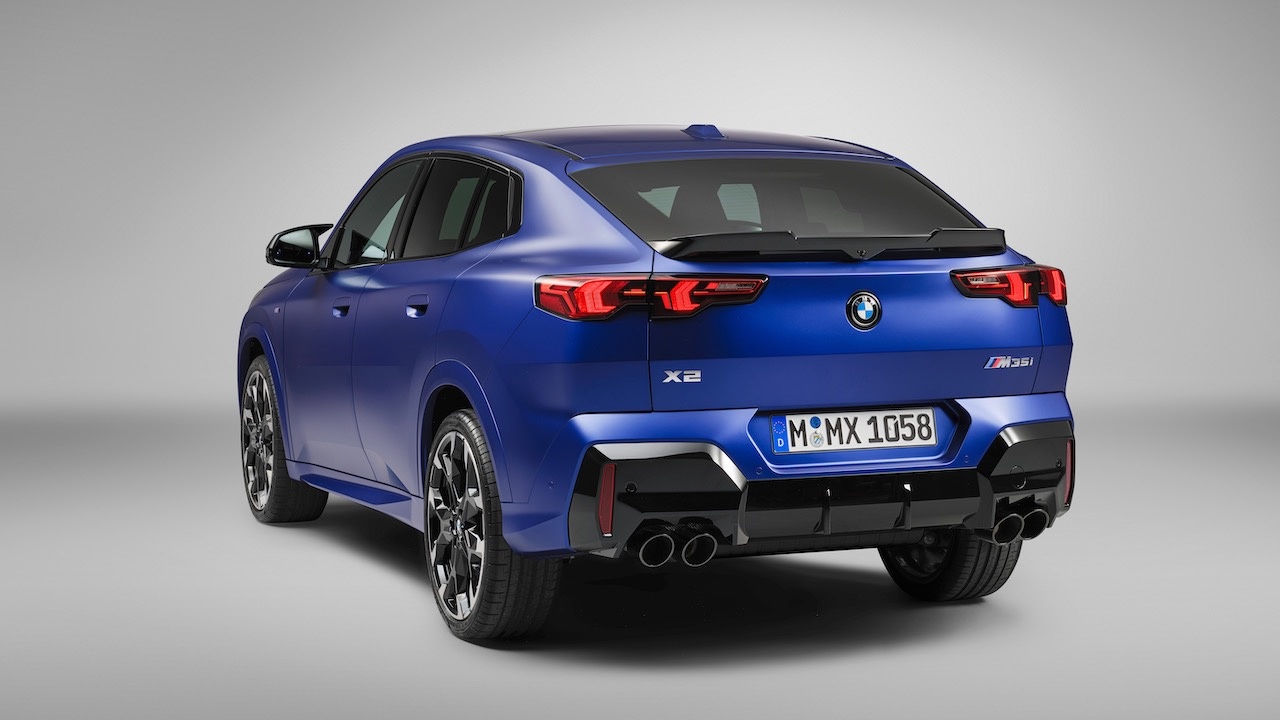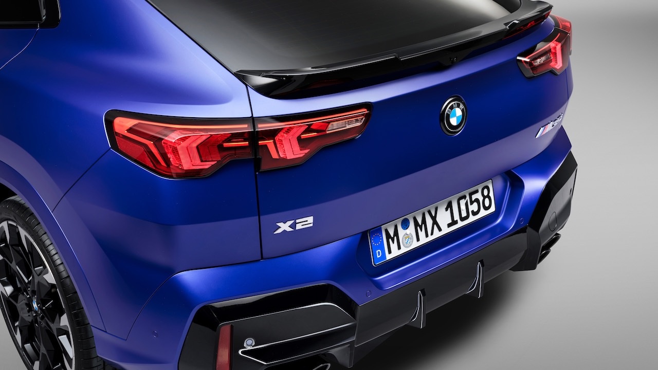 Для модели BMW X2 M35i xDrive характерны черты дизайна M, такие как две пары глушителей, интегрированные в задний бампер, что придает модели особую динамичность. Пакет M Sport доступен для всех других вариантов модели, включая BMW iX2, и также включает в себя аэродинамически оптимизированные внешние детали. В списке опций также есть пакет M Sport Pro, который добавляет расширенные внешние детали M High-gloss Shadowline, M lights Shadowline, задний спойлер M и тормозную систему M Sport с красными суппортами, среди прочих особенностей.