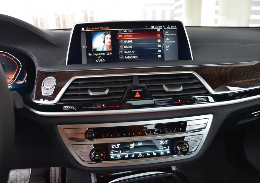 На фоне экстерьера перемены в салоне выглядят куда скромнее. Более того, если не запустить мотор, их можно и вовсе не заметить! Ведь главное новшество здесь — это унифицированная с остальными новинками «Баварских Моторов» 12,3‑дюймовая электронная приборная панель, про которую мы уже неоднократно рассказывали и также неоднократно «троллили» за сходство графики с рисунком щитка приборов китайского кроссовера Chery Tiggo 2. Вместе с новой приборкой «семёрка» получила и обновлённый медиацентр, который теперь понимает жесты. Например, можно регулировать громкость аудио-системы, вращая пальцем перед экраном. Причём на эту возможность система обращает внимание каждый раз, когда ты по привычке начинаешь вращать аналоговый регулятор: мол, мы тут в Германии ночей не спали, программы программировали, а вы пользоваться не хотите.